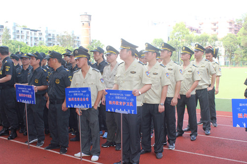 溫州市經(jīng)濟(jì)護(hù)衛(wèi)隊(duì)“永盾杯”技能大比武于8月11日在浙江工貿(mào)學(xué)院隆重舉行,來自各縣市區(qū)的24支代表隊(duì)伍(兩百多名保安員)參與了此次技能大賽的角逐。
